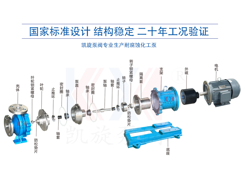 泵與電動(dòng)機(jī)共用基座,大幅增強(qiáng)運(yùn)轉(zhuǎn)穩(wěn)定性,流道采用CFX、CFD技術(shù)得到高性能水力模型,使泵的效率明顯提高,內(nèi)外磁轉(zhuǎn)子使用高磁積能、高矯頑力的稀土永磁制造,磁性不會(huì)隨著時(shí)間的推移而產(chǎn)生老化退磁現(xiàn)象,對(duì)磨部件選用不銹鋼對(duì)合金材料,其高硬度保證了磨損率,有效延長(zhǎng)了易損件的使用壽命。